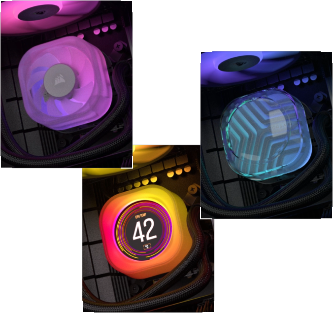 Nunca ha sido tan fácil cambiar el aspecto o la funcionalidad de tu AIO. Cambie la tapa predeterminada de la bomba por cualquier módulo CapSwap (de venta por separado) en cuestión de segundos, sin necesidad de ninguna herramienta, y podrá disfrutar de un refrigerador prácticamente nuevo.