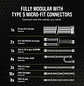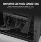 Un innovador panel lateral de la PSU con patente pendiente con conexiones modulares le permite conectar cables cómodamente en la cara lateral de la PSU, lo que facilita más que nunca la conexión y la gestión de los cables.
