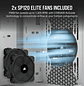 El espacioso interior puede alojar un máximo de 8 ventiladores de 120 mm o 4 de 140 mm, así como varios radiadores, como uno de 360 mm en la parte frontal y uno de 280 mm en la parte superior.