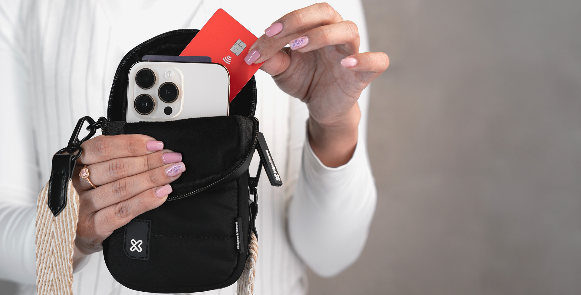 Un bolso casual, compacto y discreto con espacio para tu smartphone, tarjetas y otros esenciales.