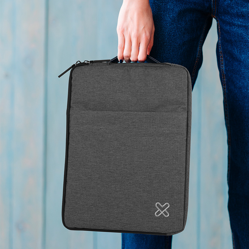 Klip Xtreme KNS-418 Funda para Notebook 14.1”, Sleeve para Laptop 14”, Bolso Laptop con Asa, Funda Acolchada para Portátil, Poliéster Resistente, Gris Oscuro