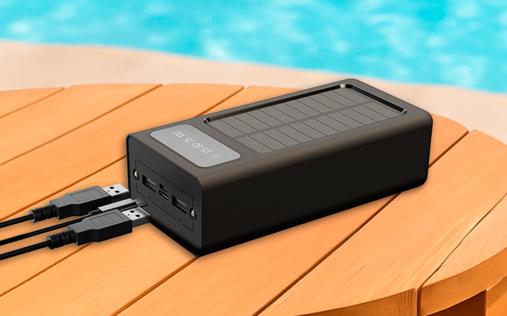 - Múltiples métodos de entrada: Recarga tu banco de energía a través del cable USB integrado, el puerto Micro-USB, el puerto USB-C ® bidireccional, o cárgalo sobre la marcha con el panel solar integrado en los días soleados.