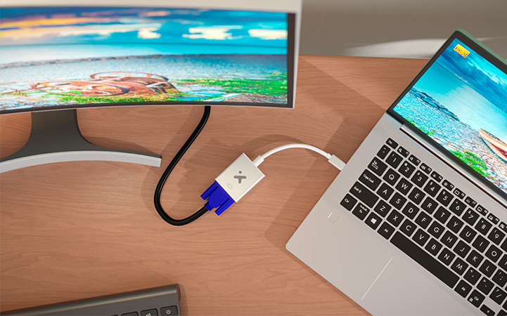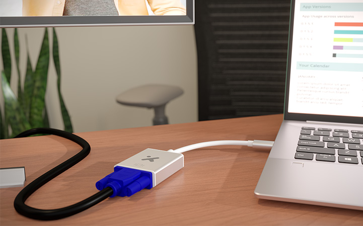 Convierte la salida USB-C de tu dispositivo en una señal VGA para proyectores y monitores con una resolución de hasta 1080p.