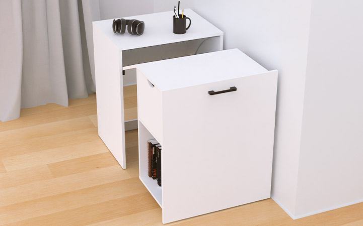 De gabinete a estación de trabajo: Transforma tu espacio en segundos pasa de un gabinete elegante a un escritorio funcional con solo tirar del asa. Ideal para espacios reducidos y ambientes modernos.