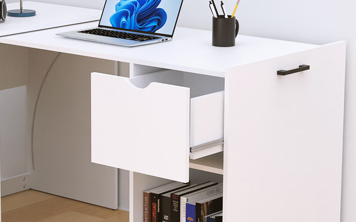 Almacenamiento inteligente, diseño funcional: Incluye un cajón de suave tamaño y una repisa adicional para mantener tus suministros y documentos siempre organizados y al alcance.