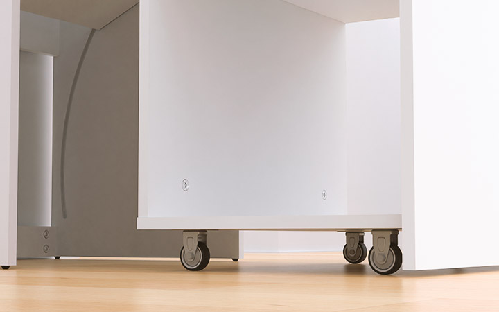 Móvil, práctico y minimalista: Sus ruedas integradas permiten moverlo fácilmente para reconfigurar tu entorno sin esfuerzo, manteniendo un estilo limpio y ordenado.