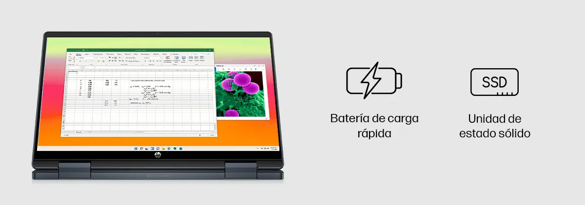 | Batería | 3 celdas, 43 Wh, hasta 9 horas y 30 minutos de duración |
