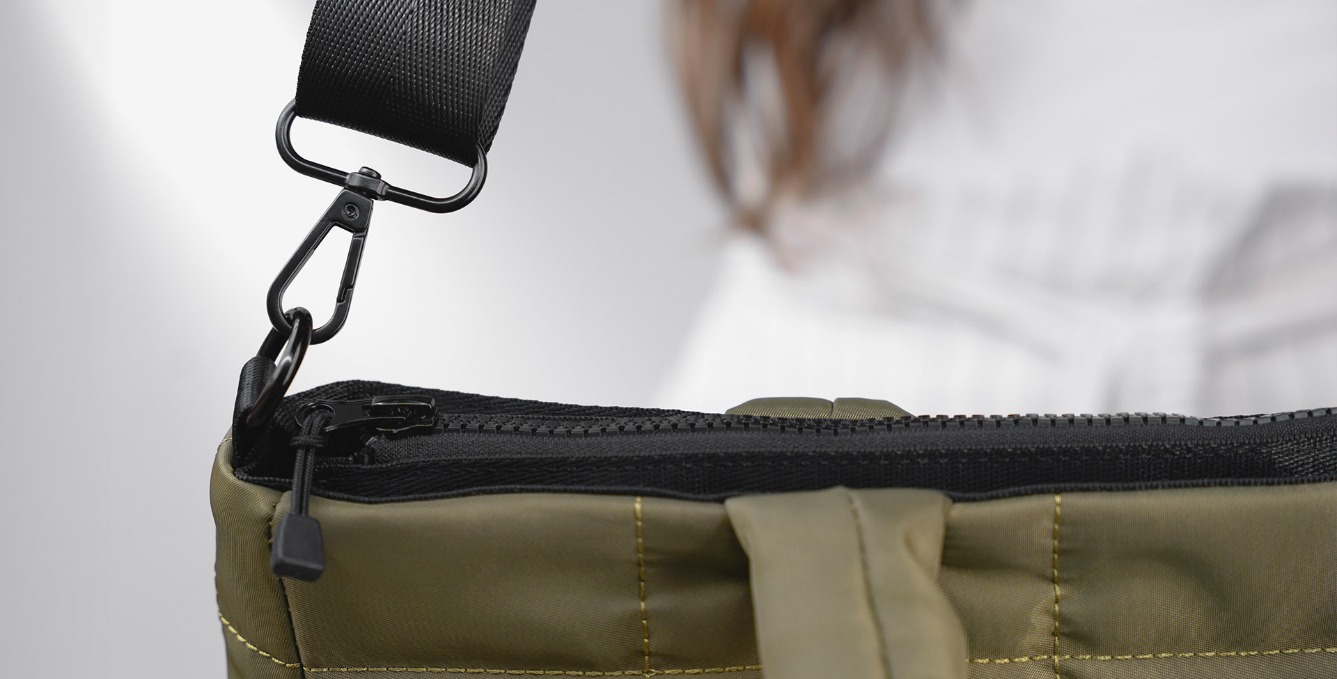 Nailon con acabado repelente al agua: estilo impecable, incluso cuando el clima no coopera.