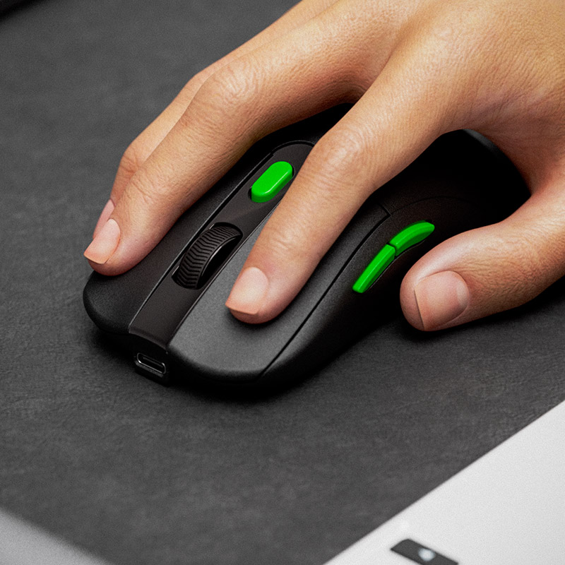 • Conectividad inalámbrica trimodo para mayor libertad – Cambia fácilmente entre conexión inalámbrica compatible con Bluetooth ® y 2,4GHz a través de un receptor USB-C ® o USB-A, con amplia compatibilidad y una señal estable, sin retrasos, hasta 10 metros de distancia.