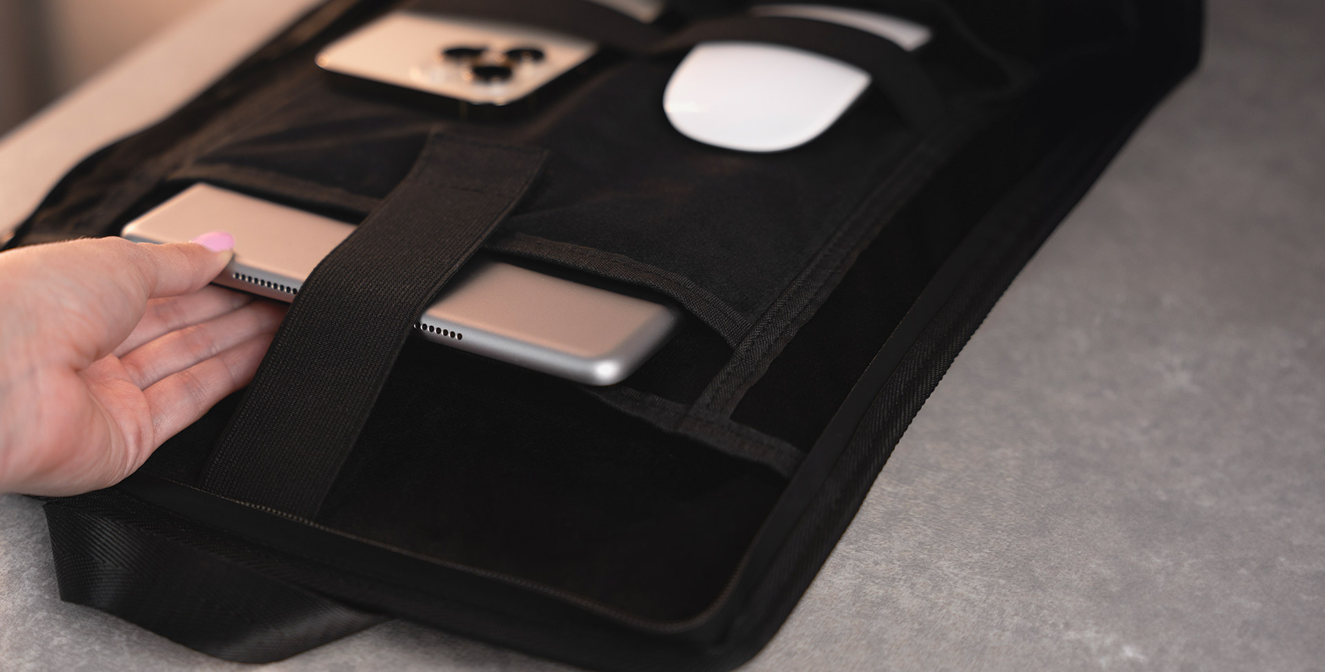 Bolsillos internos para darle a cada cosa su lugar, sin bultos ni enredos.