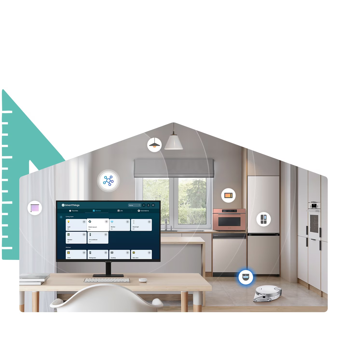 Controla tu hogar inteligente sin pausar tus programas. El monitor inteligente te permite vivir cómodamente con la aplicación SmartThings, un concentrador todo en uno para tus dispositivos domésticos inteligentes. Apaga las luces, ajusta el termostato y mucho más sin moverte del asiento.