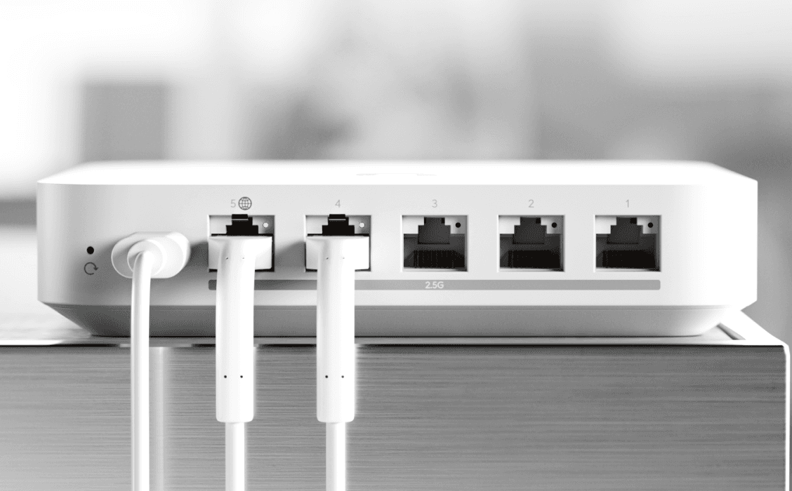 Puerta de enlace en la nube compacta de 2,5 G con soporte para más de 30 dispositivos UniFi/más de 300 clientes, enrutamiento IPS de 2,3 Gbps y almacenamiento NVR seleccionable.