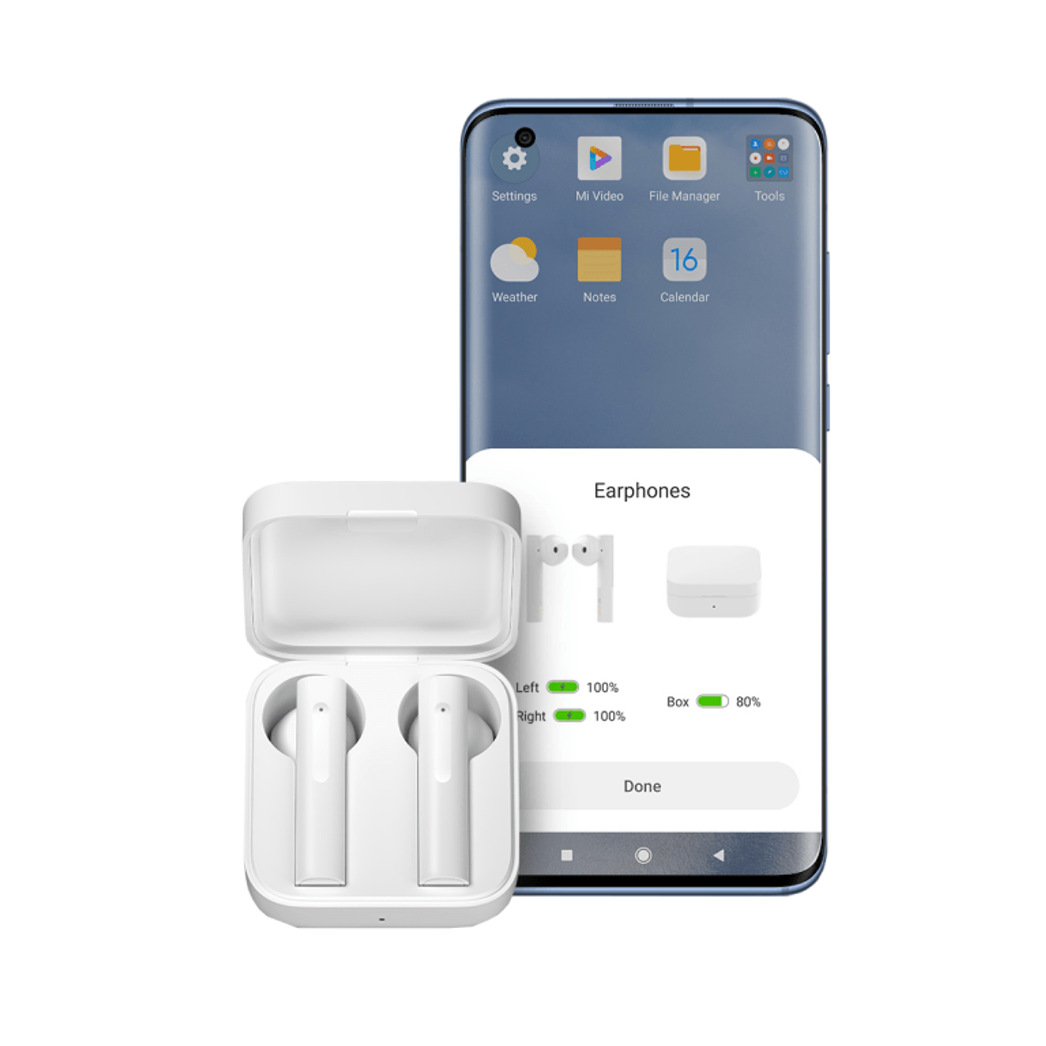 Aparece una ventana cuando se abre el estuche * y la conexión inteligente se vuelve visible: Mi True Wireless Earphones 2 Basic cuenta con la interfaz de usuario MIUI Global. Cuando se abre el estuche de carga, aparece una interfaz para la conexión de auriculares. Después de conectarse, los auriculares se pueden operar cómodamente desde su teléfono y puede ver los niveles de batería de los auriculares y el estuche de carga.