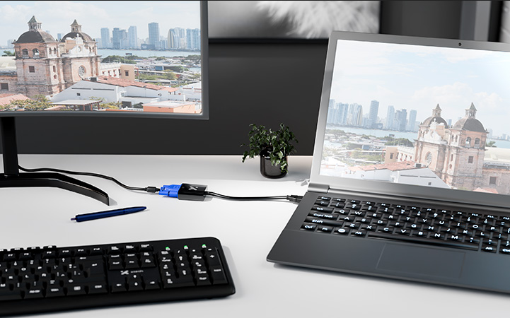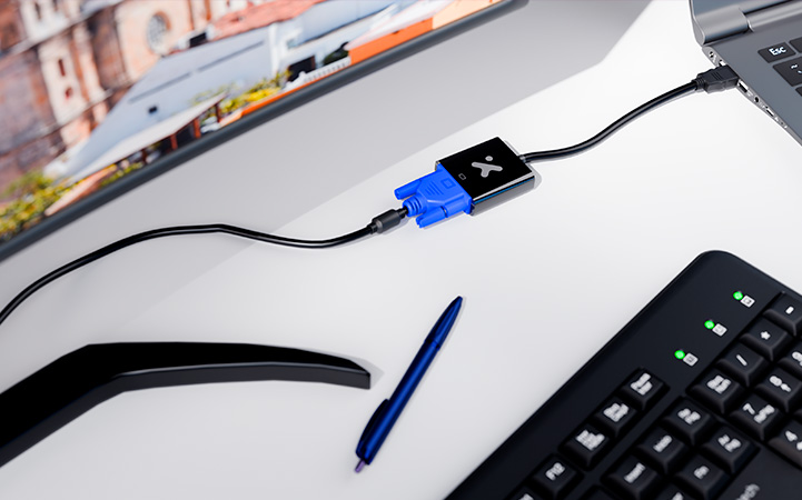 - Compatible con una amplia variedad de dispositivos HDMI® y pantallas VGA.