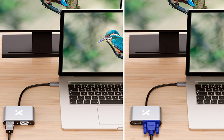 | Tipo de conector | USB-C macho a HDMI hembra + VGA hembra |